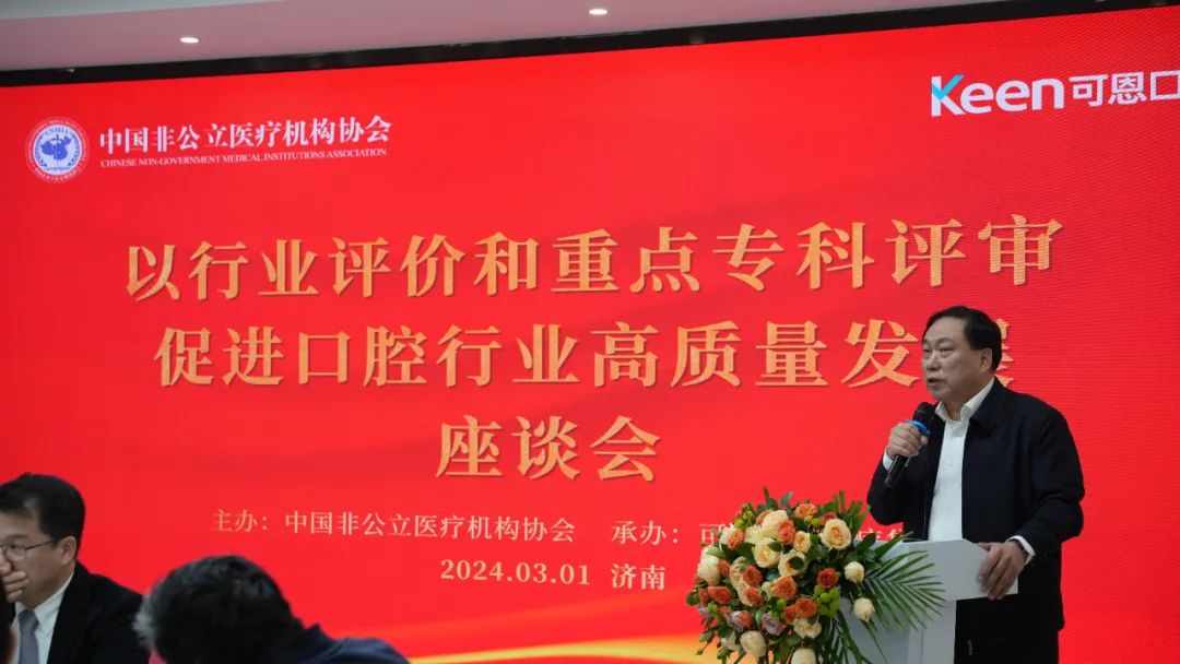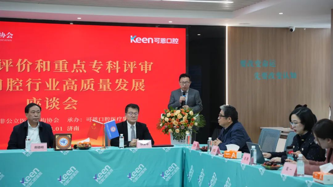 2024年3月1日下午,为贯彻落实国家卫生健康委等十部门联合印发的《关于促进社会办医持续健康规范发展意见的通知》(国卫医发〔2019〕42号)文件要求,进一步推进社会办口腔医疗机构参加国家行业评价工作和临床重点特色优势专科和专项技术评审工作,由中国非公立医疗机构协会(以下简称“协会”)口腔管理分会与口腔行业评价专家委员会联合举办的“以行业评价和重点专科评审促进口腔行业高质量发展座谈会”在济南顺利召开。