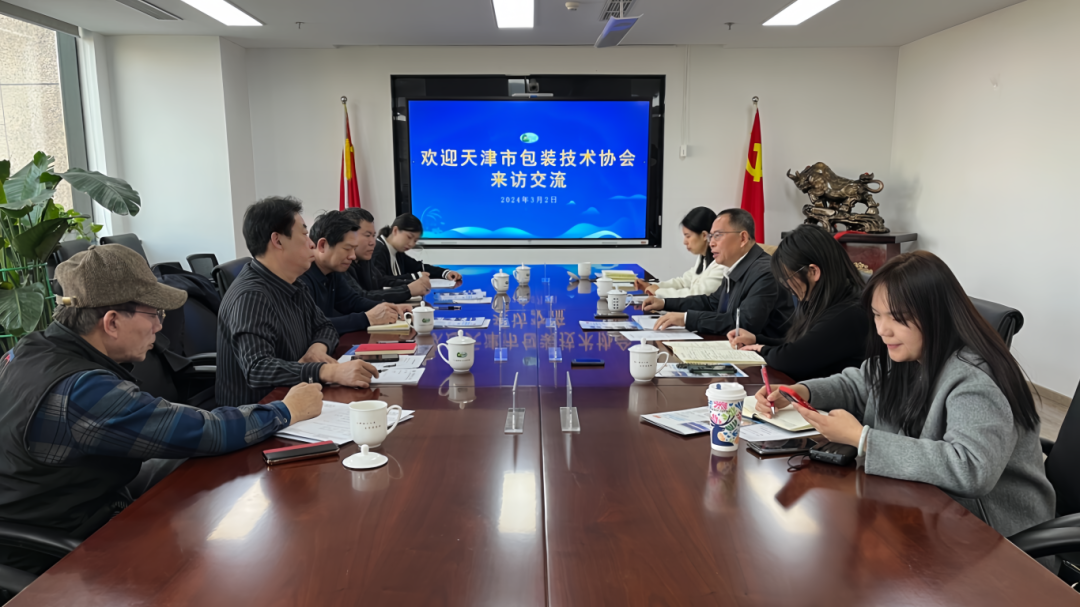 2024年3月2日,天津市包装技术协会执行秘书长马树新、塑料专委会主任蔡连祥、渤海集团(天津)国际展览有限公司副总经理李月、中管智联技术研究院(北京)公司平台董事长宁华东、市场部秘书王子璇到中国塑料加工工业协会访问交流。中国塑料加工工业协会理事长王占杰、办公室主任刘晓慧、双向拉伸聚丙烯薄膜兼电池薄膜专委会秘书长范艳、流延薄膜专委会秘书长郭书丽、双向拉伸聚丙烯薄膜专委会副秘书长付亚宁热情接待。