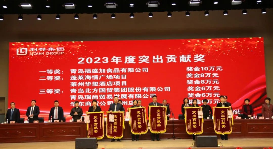 丁琳总裁指出,2023年是集团应对挑战、砥砺奋进的一年,威海新商场、蓬莱海情广场成功开业、莱州五星级大酒店正式建成营业,集团各业态布局进一步完善;利群智慧物流三期家电库项目正式投入使用,集团供应链体系进一步完善;坚持科技兴企、信息强企,研发上线资产管理系统,集团信息化管理水平不断提升;福盛加食品厂建成投产,进一步完善了集团食品生产加工品类,也是集团食品生产实现面向全国、走向世界的一次跨越。同时,集团积极承担大型商贸流通企业社会责任,继续做好城市菜篮子、蔬菜粮食应急储备和配送工作,获得社会认可并取得多项荣誉。 丁琳总裁强调,2024年,各单位、部门要坚持“稳中求进”的工作思路,认真分析市场环境,充分利用国家系列提振消费措施;积极挖掘市场潜力,提高市场占有率,全面提升各板块运营水平和盈利能力,提高集团综合竞争力。复杂的国际经济形势和严峻的市场环境给企业发展带来了新的机遇和挑战,利群集团全体员工要继续秉承“用心去做,永不满足”的利群精神,发扬利群人不畏挑战、拼搏奉献、开拓创新的优良传统,共同筑造利群集团新的辉煌!
