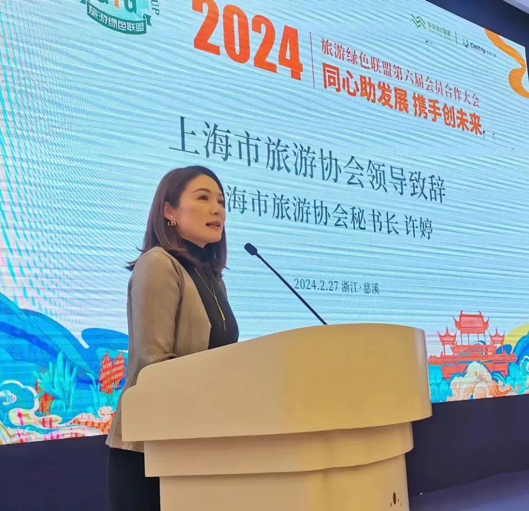 3月7日,上海旅游绿色联盟第六届联盟合作年会在宁波慈溪召开,来自沪上旅游组团社和各地地接社等旅游相关企业人士近200人参加了年会。上海市旅游行业协会秘书长许婷及旅行社分会、在线旅游分会代表应邀出席了会议。