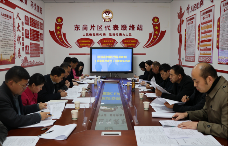 座谈会上,县人大监司工委认真解读了《条例(草案)》内容,东关社区汇报了调查问卷反馈的意见,人代联工委和城关街道人大工委汇报了在县文明办、民政局、市场监管局等9个单位征集的修改建议,特邀法律人士结合自己工作体会也提出了修改意见。会议期间,与会有关部门、社区和人大代表均认为,《条例(草案)》立法工作,是培育和践行社会主义核心价值观的内在要求,是推动城市文明建设工作常态化、法治化的应有之义,是提升市民素质和社会文明水平的现实需要,做好该立法工作意义重大。