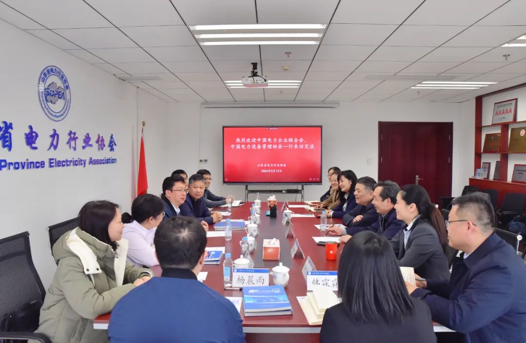 3月13日,中国电力企业联合会监事长潘跃龙,中国电力设备管理协会副秘书长、国家能源局南方能源监管局原党组书记、局长张建平,中国电力企业联合会规划发展部副主任韩放、电力发展研究院院长助理高长征、电力发展研究院副总工王秀娜、规划发展部改革处处长孙健、理事会工作部杨晨雨一行7人到协会走访交流。国家能源局山东监管办公室原党组书记、监管专员左卫华,山东省科协常委、省电力行业协会执行会长、省电力科协执行主席徐震,省电力行业协会秘书长李婷,副秘书长邱娜娜、程方、薛守凯,省电力科协副秘书长闫晶等出席交流会。