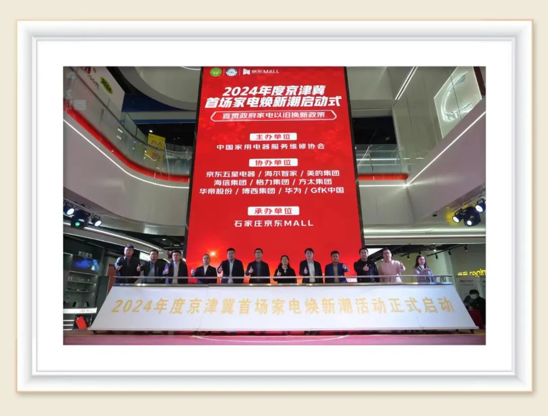 3月22日,由中国家用电器服务维修协会(以下简称中服协)主办的2024年度京津冀首场家电焕新潮活动在河北省石家庄市华北首家京东MALL正式启动。随着活动的成功举办,2024年度空调旺季惠民收旧焕新潮和厨电焕新潮活动也将同步开启。