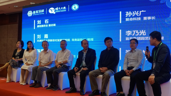嘉宾演讲结束后,针对保鲜话题中国矿业大学郑水林教授、天津科技大学食品科学与工程学院副院长王岳、天津科技大学新农村研究院副院长刘霞、首农集团园艺师李乃光教授、北京清大元农生物科技有限公司总裁李英、上海复命科技董事长孙兴广、北京鉴真保鲜科技有限公司董事长刘生涛、德和资(北京)人工环境技术有限公司副总裁陈秀来,以对话形式从保鲜产业链不同维度做了深入的探讨交流。