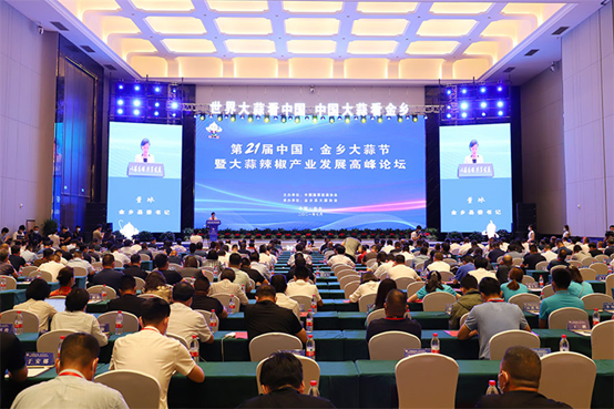 上午金乡县委书记、县长郑士民主持开幕式。全国政协经济委员会副主任、商务部原副部长房爱卿、中国蔬菜流通协会会长戴中久、山东省商务厅二级巡视员王玄瑜、山东省农业农村厅二级巡视员王刚、济宁市政协副主席李良品、中共金乡县委书记董冰共同启动了第21届中国·金乡大蒜节暨大蒜辣椒产业发展高峰论坛开幕仪式。