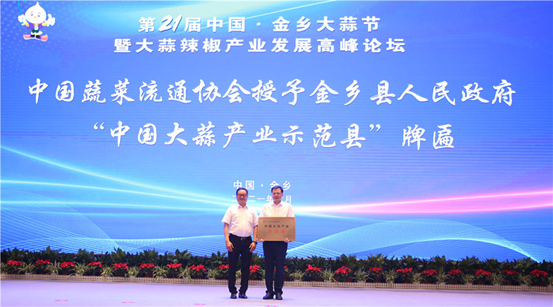 开幕式上还举行了授牌仪式,戴中久会长代表中国蔬菜流通协会授予金乡县“中国大蒜产业示范县”荣誉称号。