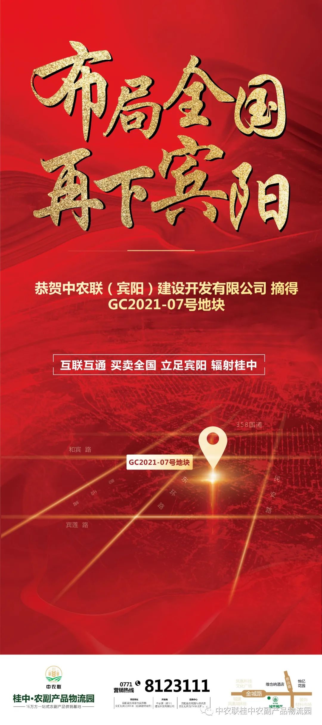 9月17日上午,随着土地成交确认,中农联(南宁)建设开发有限公司成功摘得宾阳县GC2021-07号地块,标志着中农联·桂中农副产品物流园正式落地宾阳。
