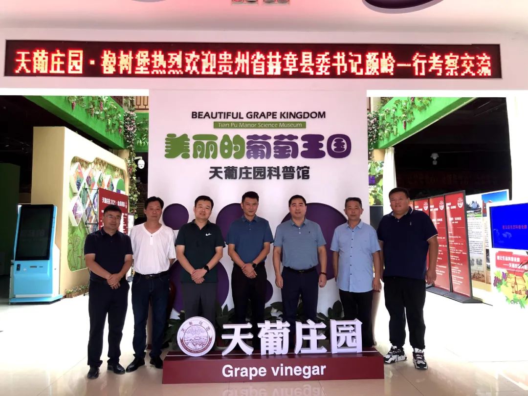 9月28日上午,贵州省毕节市赫章县委书记颜岭、副县长李光一行参观考察北京天葡庄园。董事长孙先生介绍了天葡庄园在品牌发展,产业结构布局及产品研发创新等领域的探索。并与颜书记深度交流葡萄主题一二三产融合发展的相关经验,重点探讨文旅产业发展的路径。