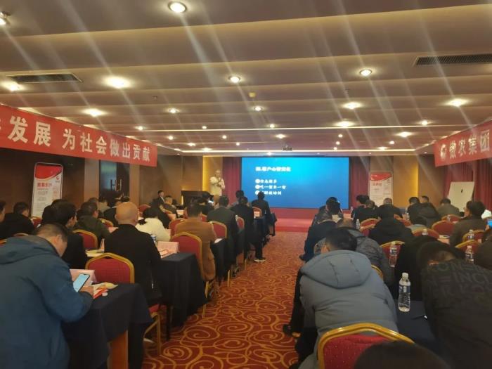 会上,韦涛老师为参会经销商详细解读了傲农文化和傲农事业。他表示,当下,中国农牧行业市场的“盘子”还很大,发展前景无限,大家要对行业有充分自信。目前,傲农已在河南布局了2个饲料生产基地、3个销售公司,基本能够满足河南省内大部分养殖客户的用料需求。 后续,傲农将加大在河南省的布局力度,力争河南全覆盖,在2年内,全力以赴把傲农“教保预”饲料打造成河南省饲料行业教槽料、保育料、预混料中的第一品牌,努力成为“河南省高端全价料制造商”的代名词,为更多客户提供全方位的优质产品和服务,以实际行动践行“以农为傲,惠及民生”的新使命。期盼广大经销商能够与傲农携手,共创伟业,共“赢”未来。