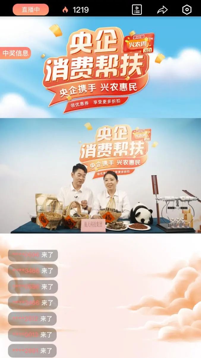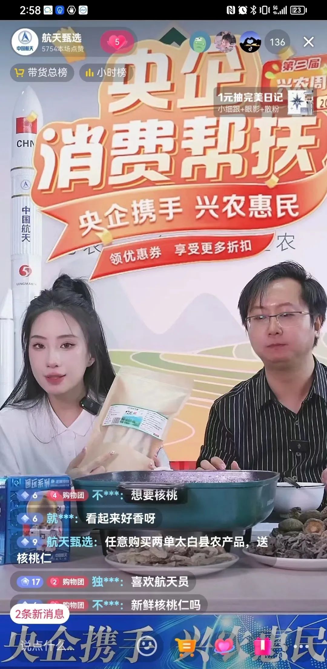 活动主会场设在国资委“央企消费帮扶”电商平台,航天科技集团派驻太白县挂职副县长任倩参加了主会场的直播带货。航天科技集团六院“团生活”平台作为分会场之一,积极参与、主动作为,用实际行动践行央企担当,为乡村振兴蓄势添能。