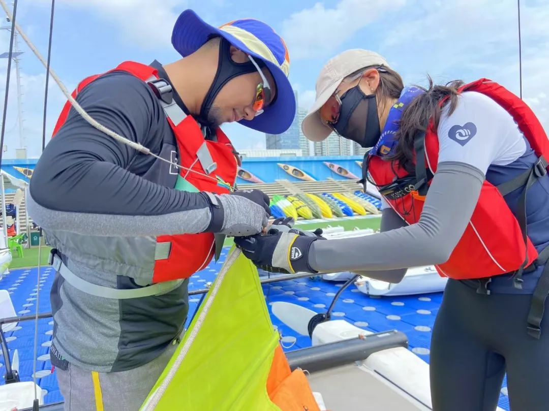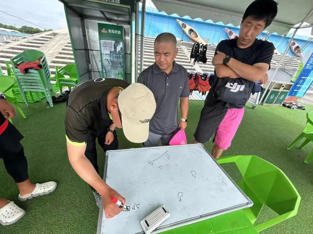 “针对有经验的选手,本次赛前培训转为赛前训练、练习赛。有些船队会指定当天的学习主题,比如迎风、顺风、转向等,教练会跟船指导,在救生艇跟随教学”。