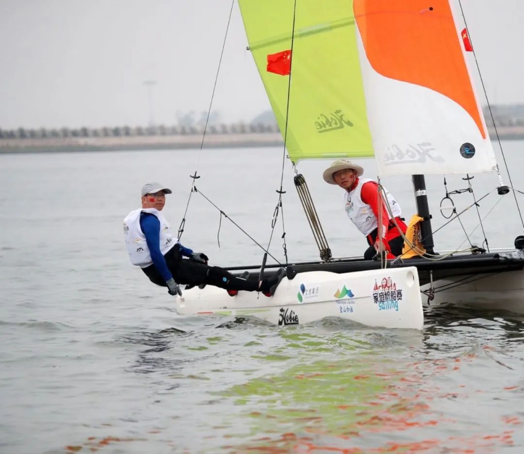 据负责本站赛前培训的狄教练介绍,对于拥有家帆赛参赛经历或具备帆船独立操作能力的参赛选手,教练们采用“以赛带练”的培训模式,让参赛家庭熟悉金山城市沙滩赛场情况的同时提升应变能力。