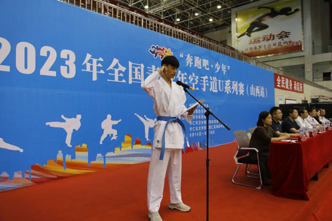 9月16日,“奔跑吧•少年”2023年全国青少年空手道U系列赛(山西站)在山西省怀仁市体育馆开赛。来自全国六个省(市、区)14支代表队141名空手道运动员将在这里同台竞技,为期两天的角逐将分别产生四个组别U9、U12、U15、U18的冠军。
