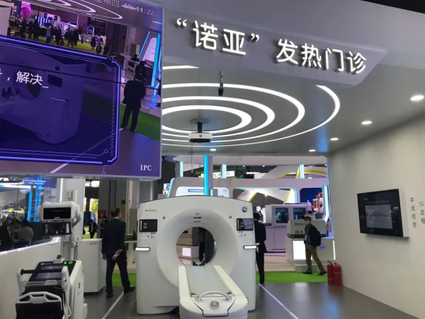 进博会三届老友GE公司的展品同样令人耳目一新。在GE展台,“诺亚发热门诊解决方案”展区还展出一台雷神山医院同款CT,在CT的上部,有一个“深度天眼”的装置,可以通过人工智能自动定位系统,识别人体扫描部位,满足5G场景下实时应用,单个患者的扫描时间节省30%。 “这套系统可以根据医疗机构的环境,减少医患接触,或者也可以做成方舱医院的形式整体输出使用,满足疫情暴发期、疫情常态化防控期等不同公共卫生防疫时期的多模态需求。”工作人员介绍。