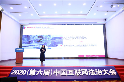 北航法学院院长助理、副教授、博士生导师裴炜发表题为“刑事司法中的个人信息保护”的主旨报告。她认为个人信息保护制度在不断完善、不断整合、不断向高层法律方面演进,但是在刑事司法领域,对于个人信息保护目前还没有相关的规定出现。
