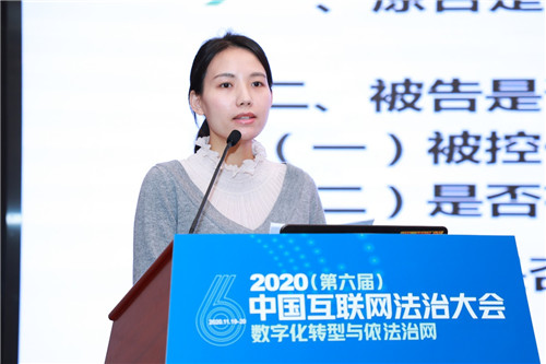 北京互联网法院法官颜君分享了题为“网络直播平台责任的司法前沿案例”的主题演讲。她结合网络直播平台侵权案件的裁判要点,对游戏直播、视频直播、表演直播等网络直播平台侵权的典型案例进行了细致的分析。她进一步对平台与主播的关系对相关责任认定的影响,尤其是不指定内容的合作分成模式直播平台应如何承担责任等实践中的难点问题,对其法理与法律具体适用层面的解决路径进行了探索。