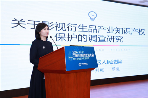 北京市朝阳区人民法院知识产权审判庭负责人罗曼作了题为“关于影视衍生品产业知识产权保护的调查研究”的主题演讲。她对影视衍生品的内涵与外延特点,权利人维权难点与司法审理难点等问题进行了剖析;进一步探究了影视衍生品产业司法保护的路径及价值取向;对影视行业从业者如何加强影视衍生品知识产权保护、规避相关纠纷提出了有益的建议。
