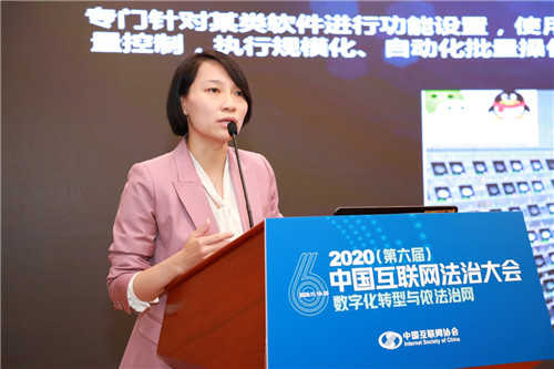 在“业界之声”环节,腾讯公司知识产权诉讼总监刁云芸作了题为“互联网黑灰产现状及诉讼打击”的主题演讲。她首先对互联网典型黑灰产、腾讯通过法律诉讼手段打击互联网黑灰产的相关案件进行了介绍,然后对诉讼中面临的难点进行了分析,包括侵权行为难发现、侵权行为易复发、侵权主体难确定等,最后对打击黑灰产、有效维护互联网行业生态健康发展提出相关建议,如对符合禁令颁发要件的行为支持诉前行为禁令、损失赔偿的计算体现市场价值等。