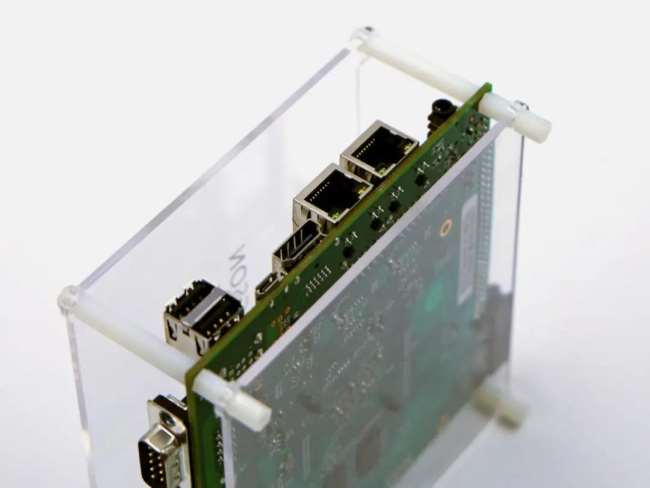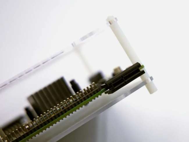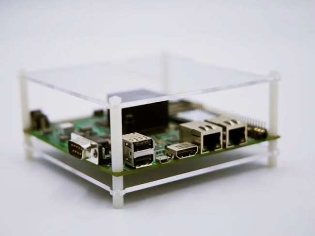 龙芯派二代主板规格符合120*120的nano-ITX标准尺寸,所有集成电路都是裸露在外面,这样看起来更有开发者的气质。为了保护元器件主板外侧还加上了一块亚克力保护板。