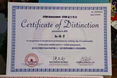 近期,由龙芯教育与恐龙编程联合支持的杭州市胜利小学五年级学生孙鸿宇,在第十二届蓝桥杯全国软件和信息技术专业人才大赛中获得青少年C++中级组一等奖,排名位列全国前1%。