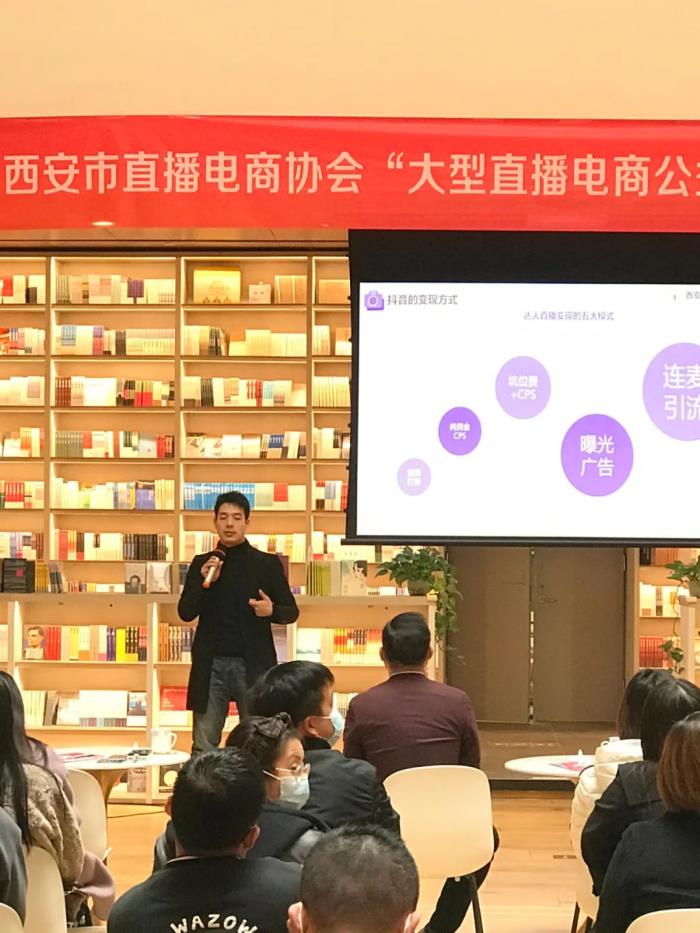 紧接着,史博老师闪亮登场,他是西安市直播电商协会金牌讲师、抖音学员in陕西合作讲师、星火晨曦CEO、陕西省广东商会智库委员会专家,史博老师今天带来的培训课题是《零基础主播带货成长计划》。