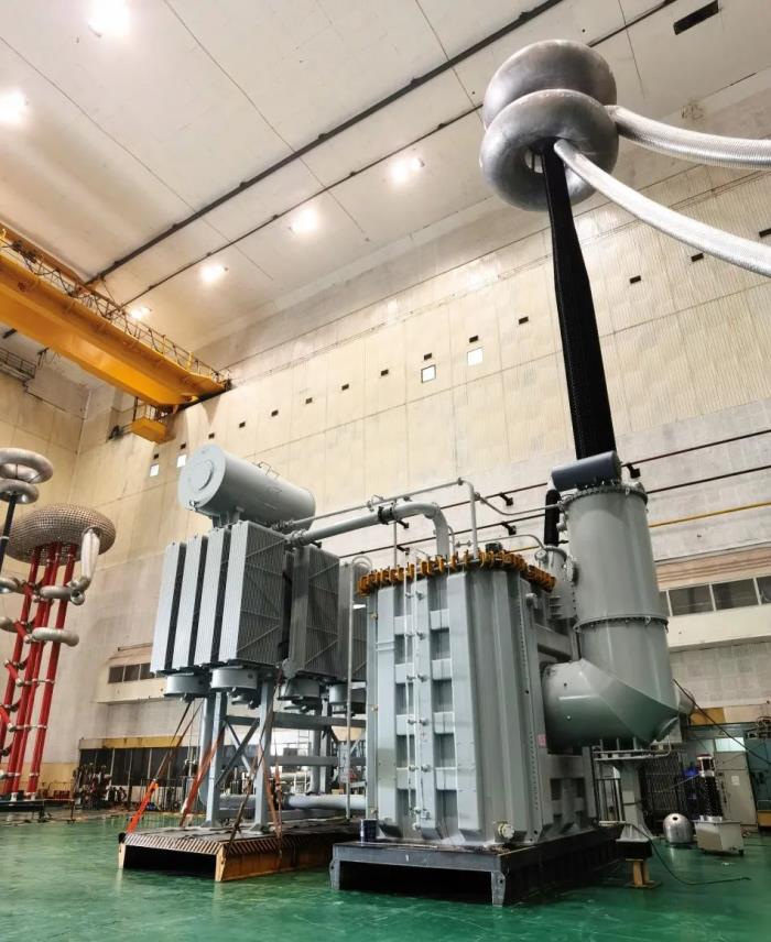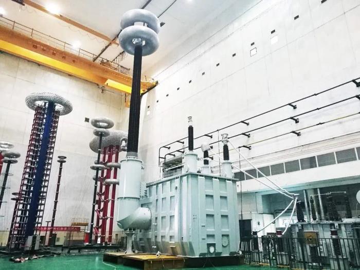 ZRDFPZ—375000/500—400柔直变压器是为“白鹤滩—江苏”±800kV特高压直流输电工程江苏虞城换流站研制的柔直变压器。通过科研攻关和优化设计,柔直变压器采用单主柱、网侧绕组中部出线结构,产品具有损耗低、温升低、局放小、噪声小、重量轻、占地面积小等特点,其主要性能指标达到同类产品国际领先水平。