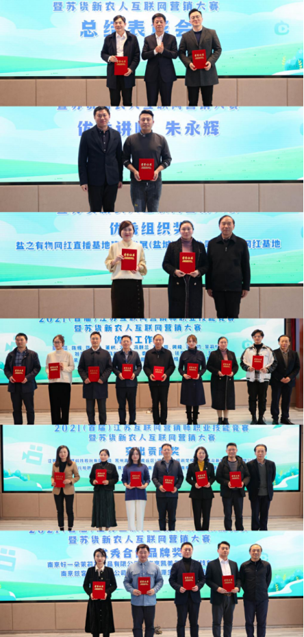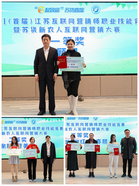 “2021首届江苏互联网营销师职业技能竞赛暨苏货新农人互联网营销大赛”决赛于2022年1月15-16日在南京、苏州、扬州、宿迁四地同时举办。经过紧张角逐,顾月获得“首届江苏互联网营销师职业技能竞赛”一等奖,余晔、曹美娟获得二等奖,朱囡囡、刘红、舒亦熙获得三等奖;余晔、唐志军获得“苏货新农人互联网营销大赛”一等奖,傅中林、周瑞岭、许志君获得二等奖,刘江、周倩、李洋洋、贾斌、张丽丽获得三等奖。