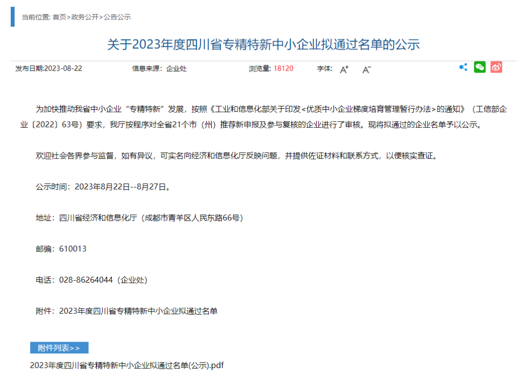 2023年度四川省专精特新中小企业名单(部分)