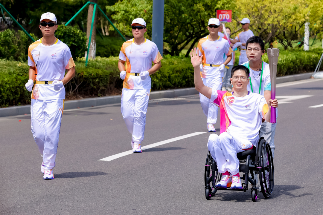 他也是本次杭州亚运火炬传递活动中,唯一坐在轮椅上的火炬手。