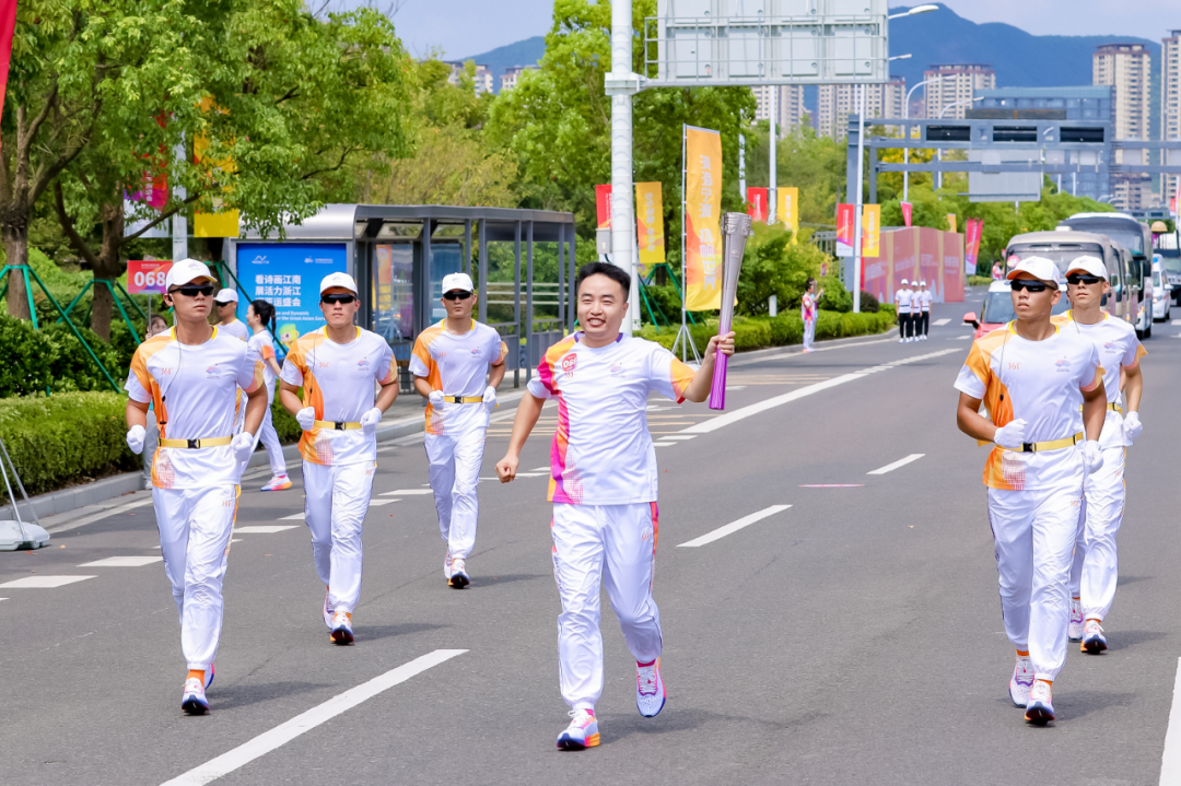 2023年09月12日,杭州亚运会火炬传递活动在宁波举行,第 70 棒火炬手范丙坐在轮椅上顺利完成了火炬传递。
