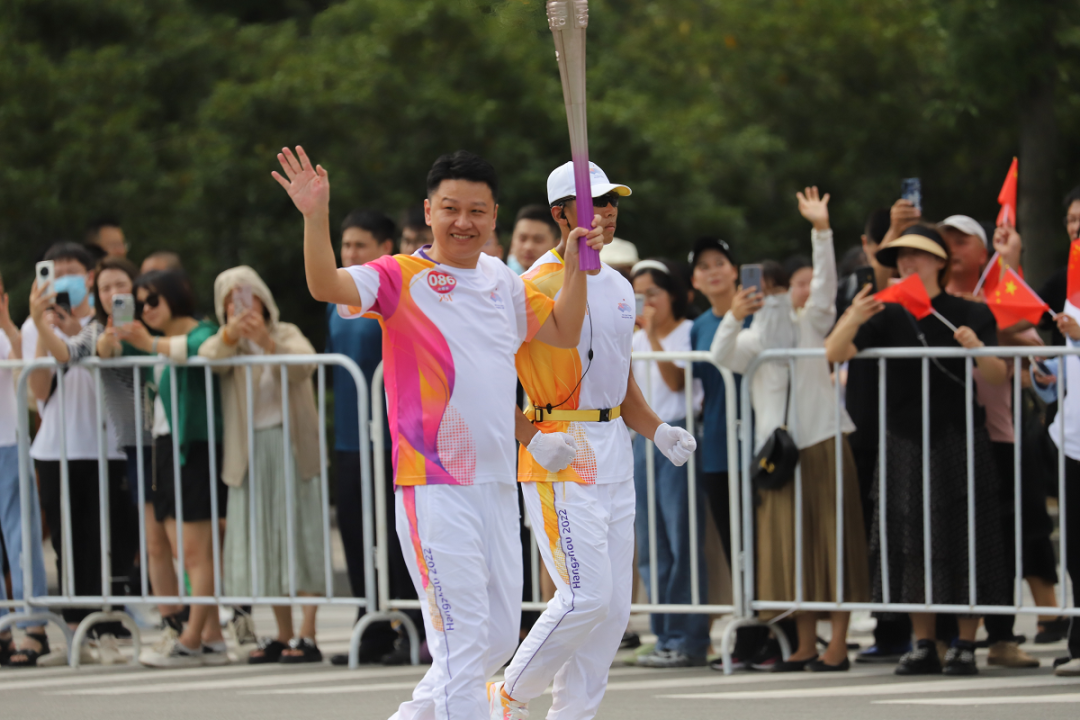 今天传递亚运火炬的,还有我的另外一位同事——冯晶晶。
