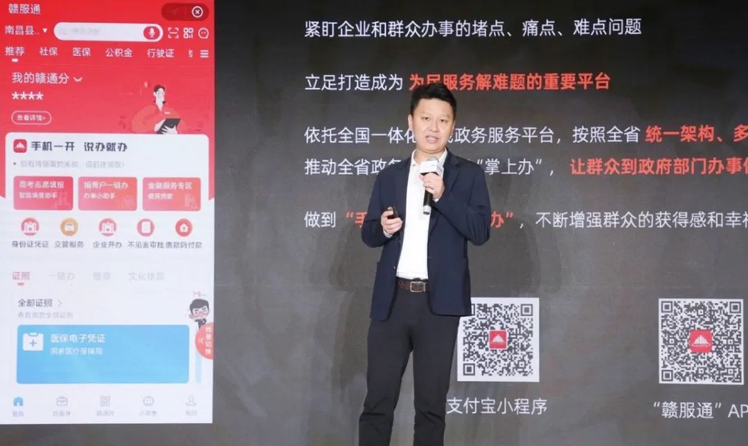 冯晶晶是蚂蚁外派管理部的一员,2020 年,他举家从武汉搬到了南昌,担任刚刚成立的数字江西科技有限公司的 CEO,和公司的 100 多名员工一起“创业”,支持江西的数字化发展。在政府的推动和技术的加持下,数字江西运营维护的“赣服通”平台了成为江西群众生活的“小助手”和企业服务的“小秘书”。越来越多的日常大小事都能通过手机在 10 分钟之内解决。提取公积金、给孩子交学费、找工作、办贷款......现在“赣服通”平台已经上线 16000 多项服务,实名用户数也已经突破 4900 万。“办事不用求人、办事依法依规、办事便捷高效、办事暖心清爽”的“赣服通”平台也成为了江西营商环境的一张响亮名片。