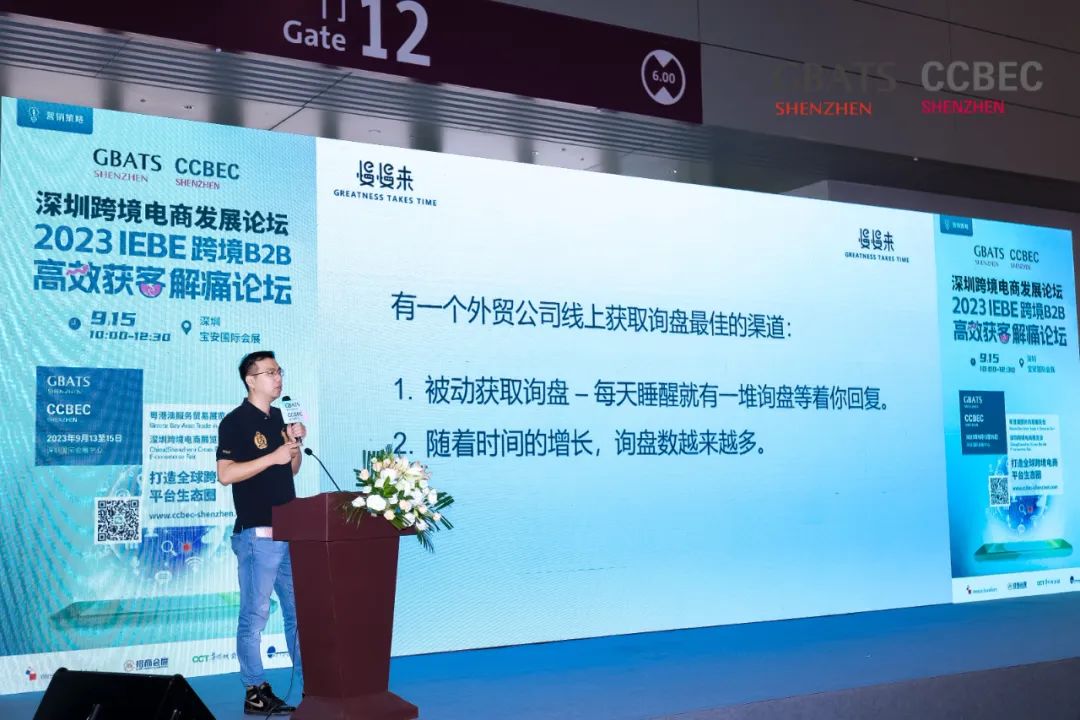 9月15日,“2023 IEBE 跨境B2B高效获客解痛论坛”在深圳跨境电商展览会(CCBEC)上圆满举办,论坛由广东省网商协会、IEBE 组委会、深圳跨境电商展览会组委会主办。超过400名跨境电商行业代表在现场参与,论坛通过协会视频号线上直播,超过1200精准用户在线上收看了论坛。