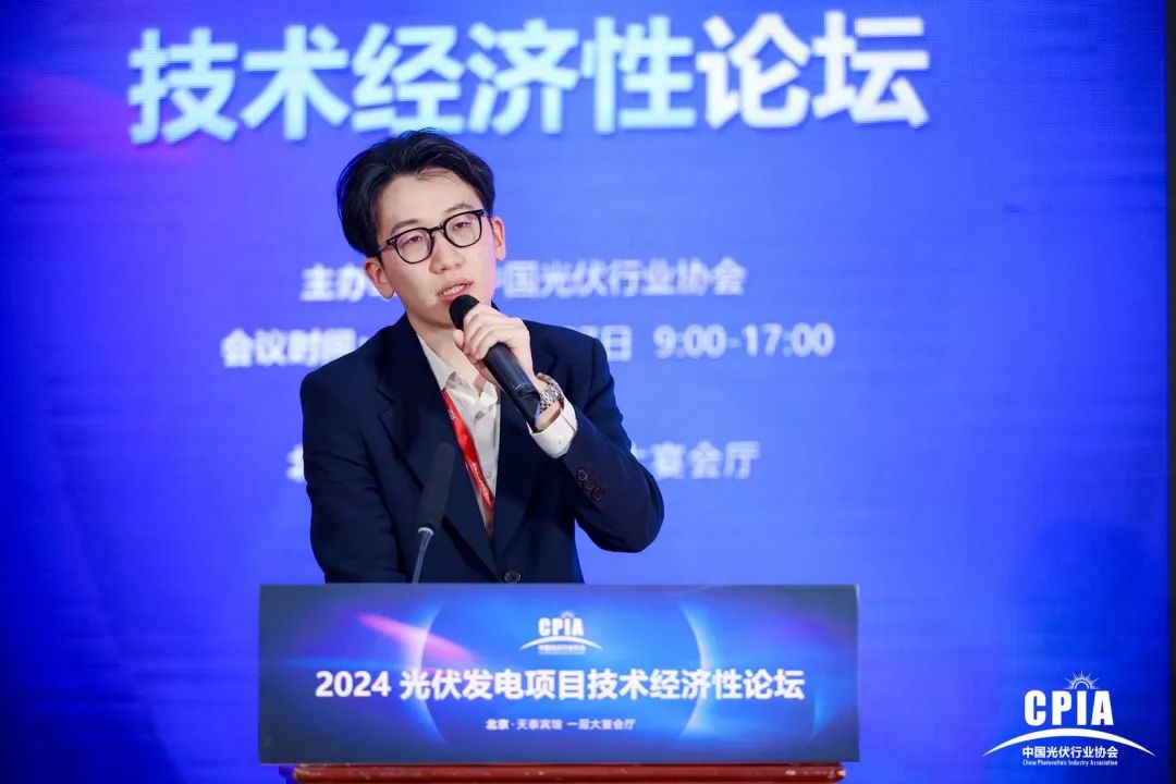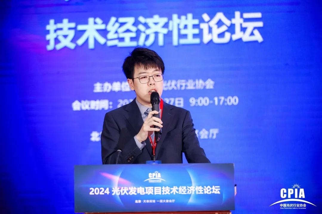 晶科能源股份有限公司光伏解决方案高级经理谢思源作“光储一体 决胜‘剩’世——晶科能源N+储多场景应用及经济性分析”的报告。谢思源经理就晶科N型技术优势、N型实证及价值分析、晶科能源光储项目等方面进行了全面分享。