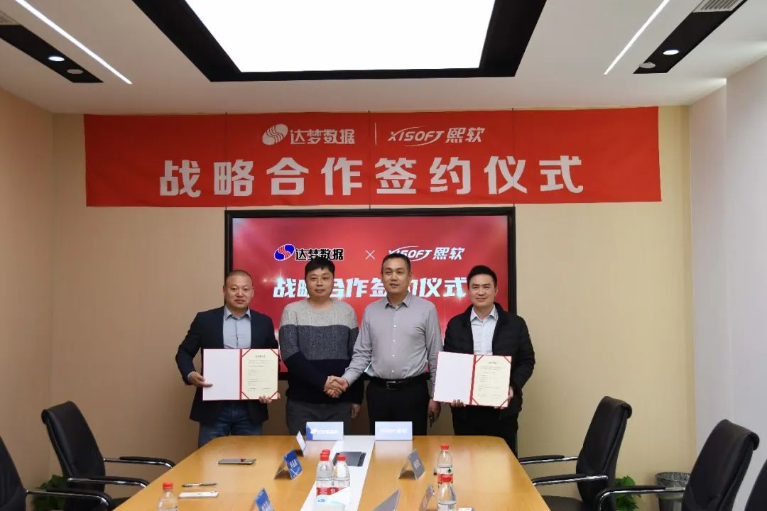达梦数据渠道拓展部总经理卢亚波、熙软科技HRP事业部总经理杨成意代表双方公司签约,达梦数据副总经理帅立立、熙软科技常务副总经理黄宝国共同出席并见证签约。