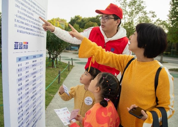 本次活动设有“微笑集市”“亚运文化展示”“亚运知识竞赛”“亲子趣味闯关”四个区域,近30个活动展位,将亚运文化知识积累、亚运运动项目体验、体育健康公益服务等内容相融合,让参与活动的亲子家庭能够零距离、多角度了解、体验亚运文化与项目。
