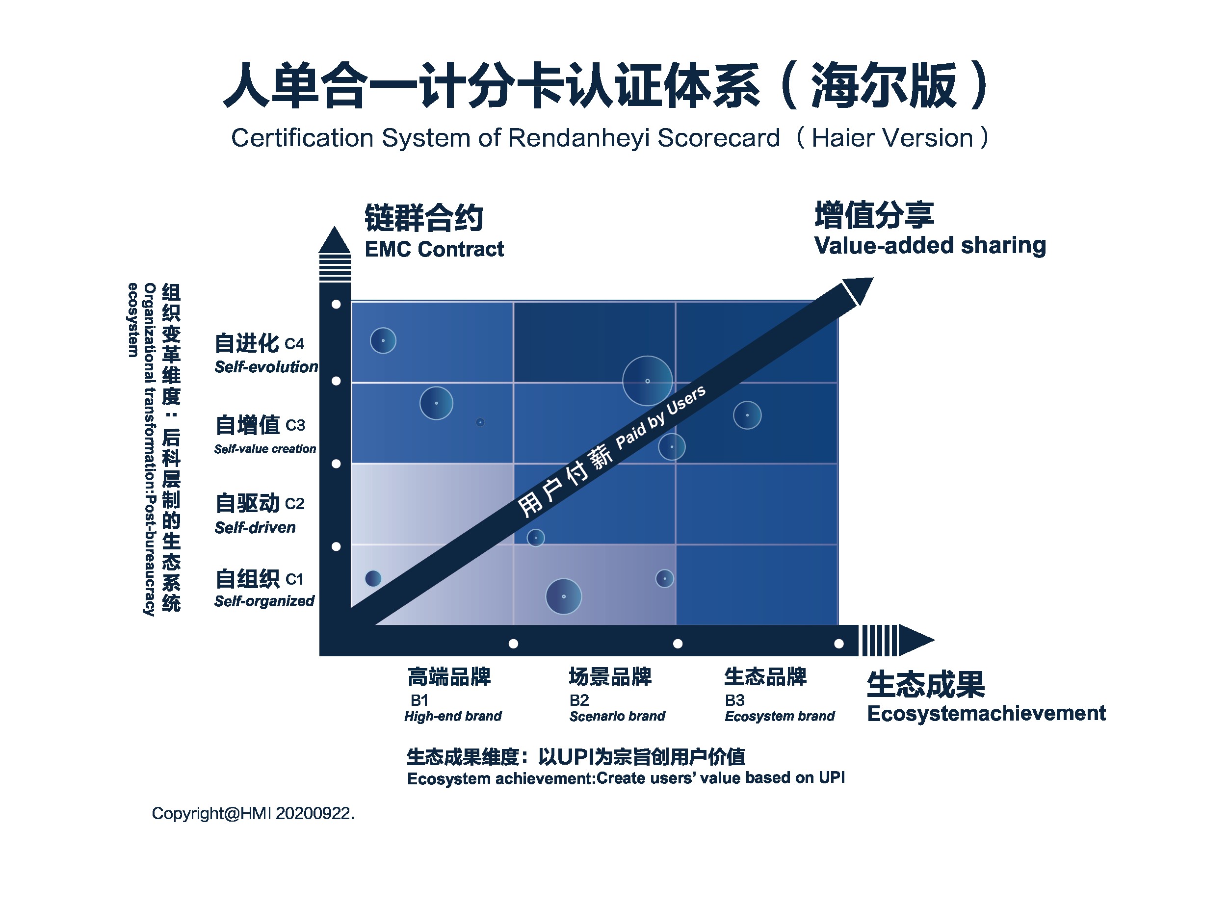 这种灵活的组织和企业的平台,落实到链群组织和人单合一计分卡上,就是让每个创客在创造用户价值的同时分享自己的价值,加速了物联网生态质变,创客的自驱力也让企业更好地去应对不确定性。