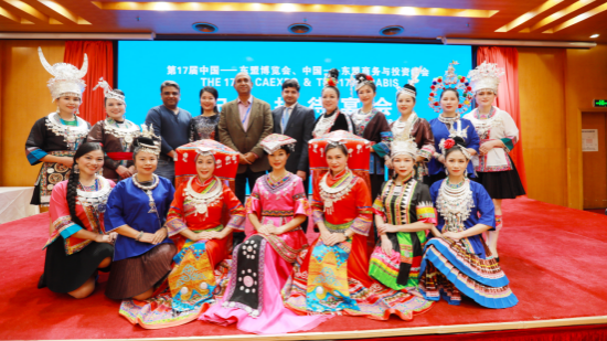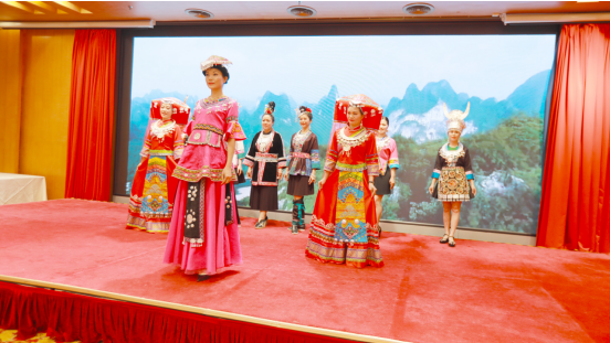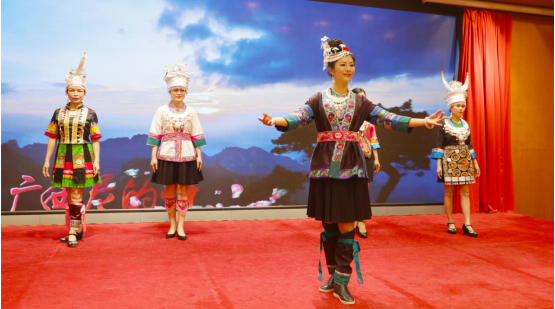 山水秀美的八桂大地上,十二支世居民族和谐共存却不失鲜明个性,共同创造了灿烂的广西民族文化。与会嘉宾共同欣赏了民族服装秀《广西尼的呀》,民族乐器合奏《山歌好比春江水》、《青春舞曲》,哒依组合带来的原生态三声部民歌《山歌满坡坡满羊》,精彩纷呈的广西民族文化节目承载着壮乡儿女的心声,热烈欢迎四海宾朋相聚绿城南宁,相聚美丽广西,并通过东博会一起开启合作、交流的融合之路。