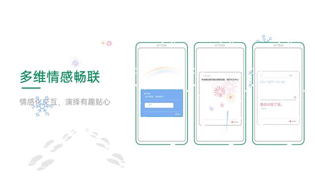 凭借更准确的语义分析小布助手可轻松实现情感交互,成为更懂用户的贴心朋友。它可在合适的场景与用户实现互动沟通并进行技能推荐、引导及执行。例如,当你说出"新年快乐"时,小布助手会回复"新年快乐呀! 你有什么愿望?"当你说出愿望后,它则会继续回复"听说看见烟花就会愿望成真,祝你天天开心!"并点亮放烟花技能特效。
