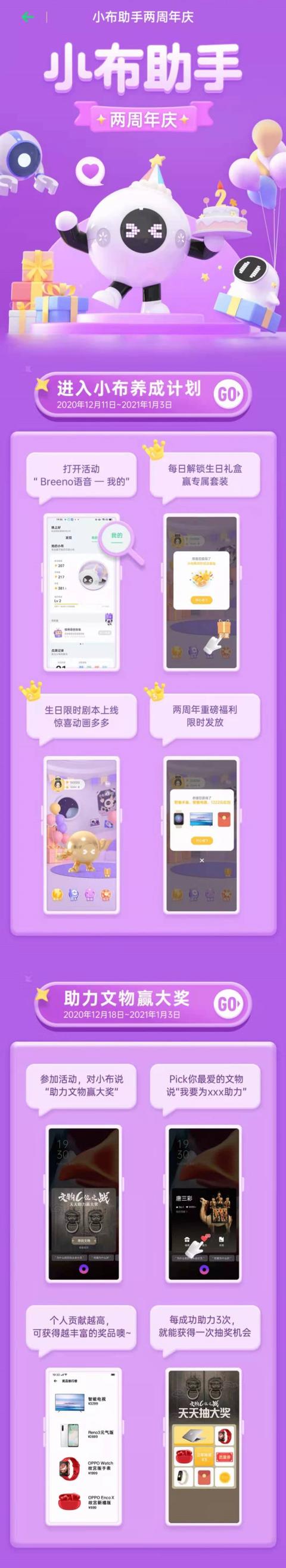 截至发稿,小布助手两周年生日会活动正在火热进行中,生日会包括小布养成计划、为文物打榜活动、冬至-疫尽春归H5的多个主题趣味玩法。现在参与生日会(参与范围:小布助手客户端版本5.12.0至6.0.0或7.3.0以上),还有机会获得OPPO智能电视R1 55寸、OPPO Watch ECG版智能手表、Kindle等丰厚奖品。(OPPO小布助手 供图)