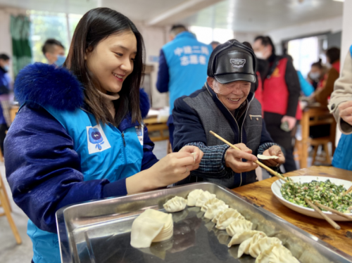 12月21日,“陪伴老人 清廉过冬至”活动在重庆市江津区珞璜镇举行。来自中建二局西南公司的志愿者走进珞璜中心敬老院,为老人们表演节目、理发、剪指甲,并和老人们一起包饺子、聊天忆往昔,过清廉冬至节。