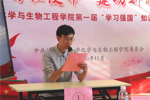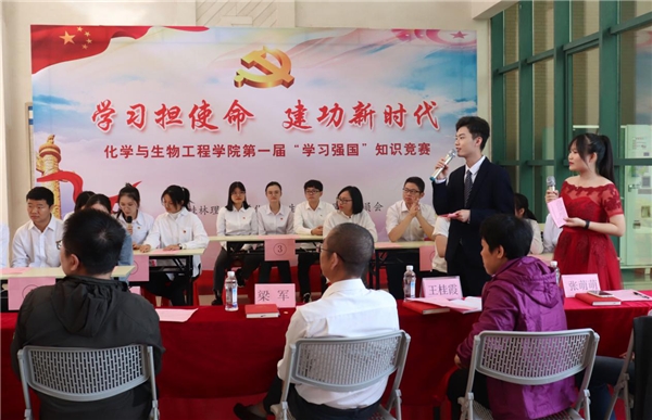 为教育和引导广大师生党员认真学习、遵守、贯彻、维护新党章,进一步提升学院全体党员使用“学习强国”平台开展学习活动的积极性、主动性,检验党员学习成效,2020年12月24日下午2:30,由化学与生物工程学院学生党建办公室组织的第一届学习强国知识竞赛活动在萃华楼大厅举行。学院党委书记、各党支部书记,及200余名师生党员出席活动。