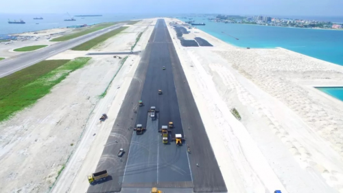 图为中铁北京局参建的马代机场项目创新施工工艺,采用“四机联铺” “六机联铺”不断刷新跑道工程施工记录,赢得了马方政府及业主单位的通报表扬。