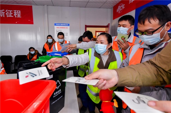 生活垃圾管理政策体现了绿色健康的生活理念,关系着广大人民群众的生活环境,关系着资源的节约及循环利用,同时也是社会文明水平的一个重要体现。活动以垃圾分类主题宣讲、体验垃圾分类和抢答游戏以及签名活动等方式,向一线工人讲解如何进行垃圾分类、分类后如何处理等问题,在项目一线掀起了垃圾分类“新时尚”。为了巩固学习成果,宣讲结束后,还开展了趣味小游戏,针对有害垃圾、可回收物、厨余垃圾、其他垃圾四类制作了若干垃圾分类小卡片,工人们对这些卡片进行分类投放。经过互动游戏后,对生活垃圾分类有了更深入的了解。最后还开展了主题签名活动,“一份签名、一份承诺”,每一个签名背后都表达了一线工人对推动绿色低碳发展,建设美丽天津的坚定决心。大家纷纷表示要争做垃圾分类行动中的先行者、宣传者与监督者,努力把项目建成环保、低碳的“绿色”项目,为建设美丽天津作出自己的贡献。
