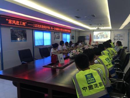图为社区干部走进建筑工地向企业宣讲家风家训