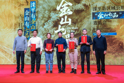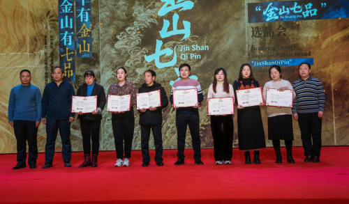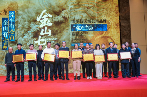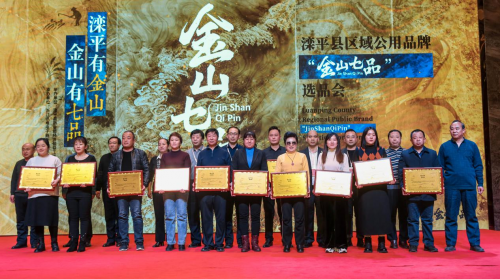 经过各企业一一推介、评委详细打分,现场评选出金山七品最具人气农产品品牌奖5个,分别是:国行融投承德农业发展公司、承德康熙酒业有限公司、財旭农牧专业合作社、绿康园果蔬种植合作社、承德三源鑫宇农业科技有限公司;金山七品七佳标志性品牌奖7个,分别是:河北滦平华都食品有限公司、承德华朗食品有限公司、滦平峰峥食品有限公司、承德塞北明珠酒业有限公司、滦平旺地种植专业合作社、滦平县美旺手工编织专业合作社、承德山知话茶饮开发有限公司;金山七品优质农产品品牌奖8个,分别是:滦平县新硕农业发展有限公司、承德鹤鹿春民俗文化有限发展公司、滦平泽泉农牧专业合作社、承德党润农业科技有限公司、承德金滦米业有限公司、承德桃木神民俗文化发展有限公司、承德宁民农牧专业合作社、滦平济世中药材种子繁育有限公司。与会领导和评委给获奖企业颁奖并现场合影留念,同时,20家企业获得了“金山七品”公用品牌的授权使用。