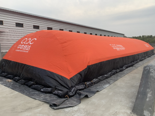 “这就是消除鸡粪臭气的秘密。”在一座橙色膜覆盖的堆体前,杨总介绍,这就是引进的新型鸡粪无害化处理设备——中农创达纳米膜无臭堆肥机。