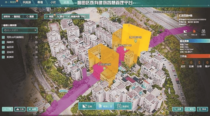 短短不到三年,福田区既有建筑智慧管理系统已迭代四代,覆盖范围越来越广、功能越来越多。如今,系统已形成了一个集房屋结构、幕墙管理、建筑边坡及深基坑管理和暗渠上盖房屋监测业务为一体的社会治理智能“一张网”,以既有建筑安全为核心,将影响的多因素风险源全部纳入管理,做到全覆盖。