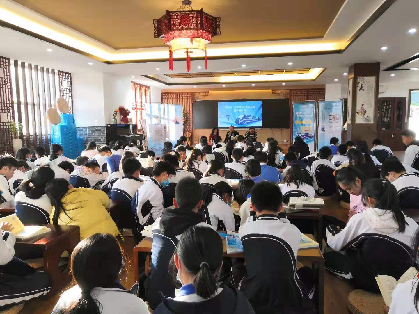 福田区作协副主席王振文、新书作家李玉、管启富、柏华等作家来到作协基地梅山中学“梅之韵”文学社,与学校校长王云虎、副校长钱飞、主任彭永宏等近百名师生开展好书分享活动。作家们讲述书本背后的故事,分享写作诀窍,与师生展开热烈互动,现场掌声不断。