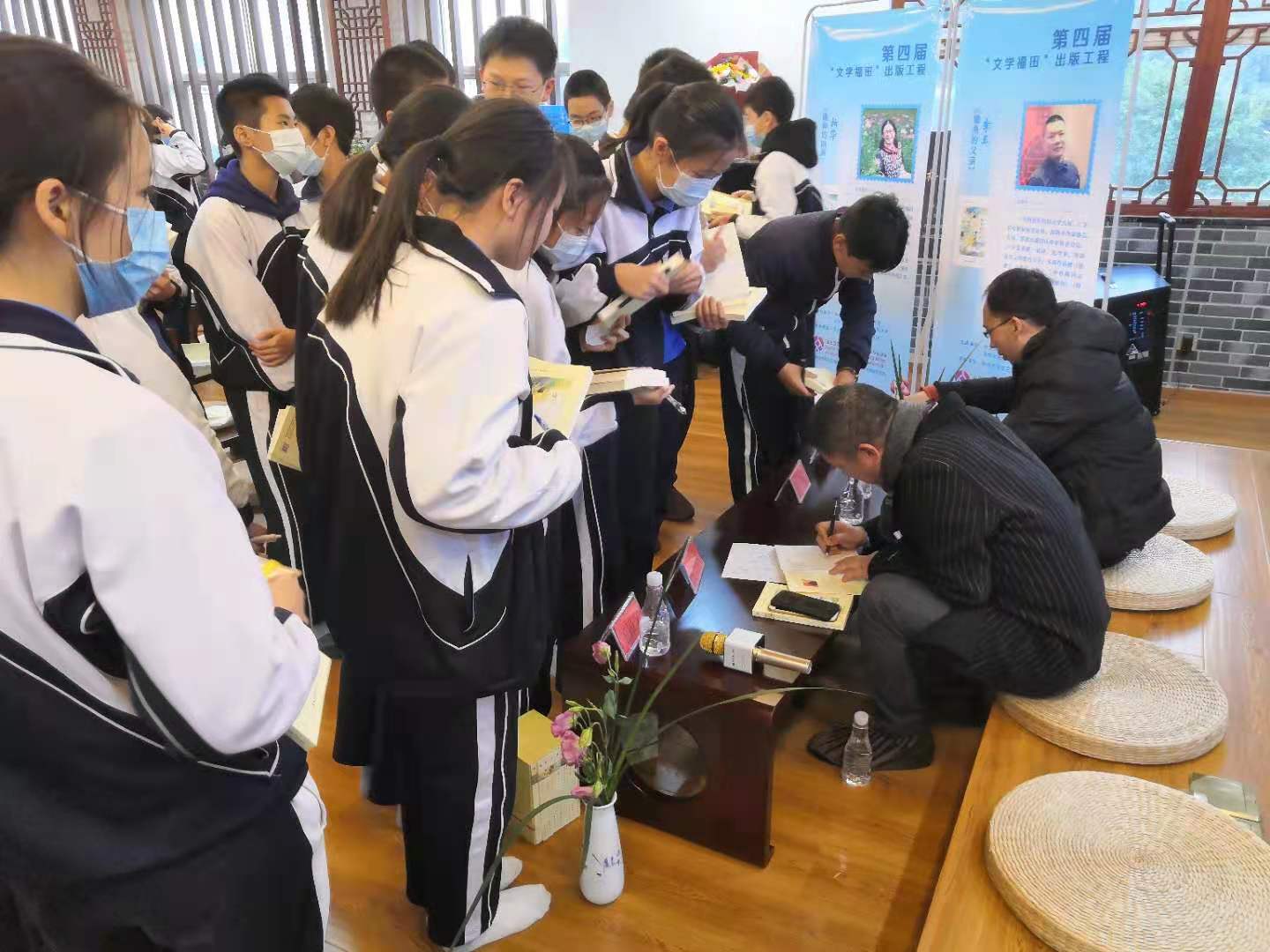 当活动进入到互动问答环节是,同学们热情高涨,纷纷提出自己品读著作时的疑惑与感想。活动的最后,是作家老师们签名赠书,与作家近距离交流。
